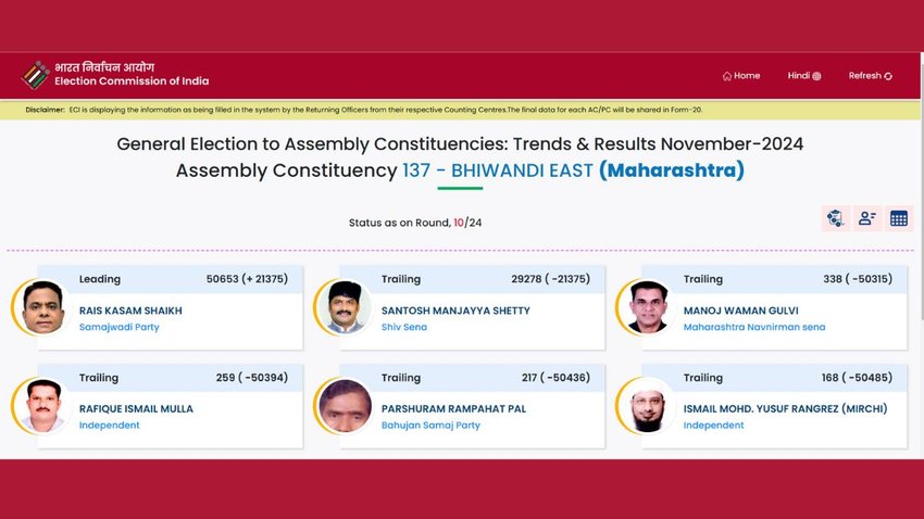भिवंडी पूर्व सीट पर कौन आगे?