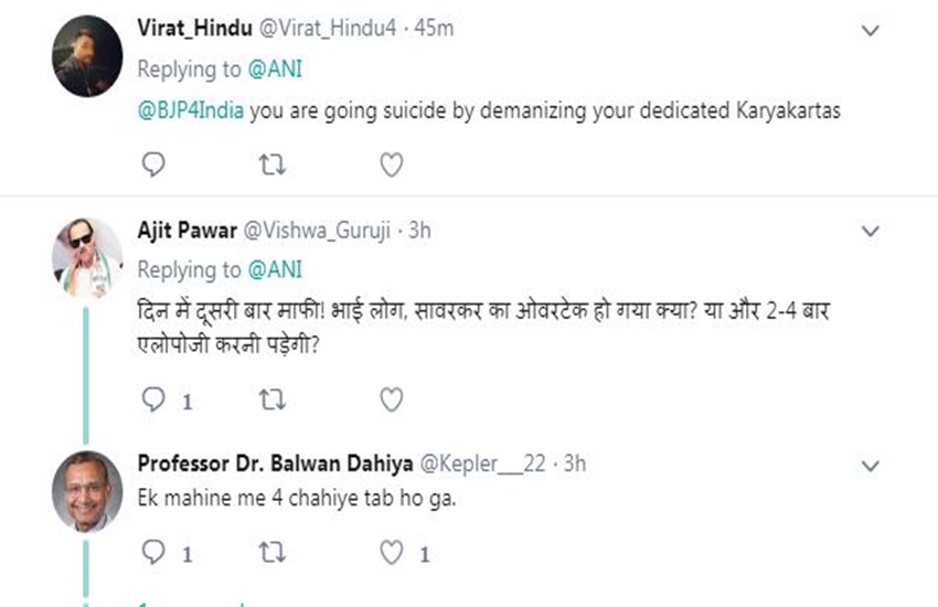 एक अन्य यूजर ने कहा ‘दिन में दूसरी बार माफी! भाई लोग, सावरकर का ओवरटेक हो गया क्या? या और 2-4 बार एलोपोजी करनी पड़ेगी?’