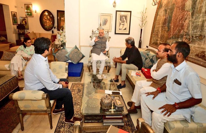 भारतीय जनता पार्टी (बीजेपी) अध्यक्ष अमित शाह ने शुक्रवार (01 जून) को भारतीय क्रिकेट टीम के पूर्व कप्तान कपिल देव से उनके घर जाकर मुलाकात की और मोदी सरकार के चार सालों की उपलब्धियां उन्हें बताईं। शाह ने ‘‘समर्थन के लिए संपर्क’’ अभियान के तहत पूर्व क्रिकेट खिलाड़ी से मिलकर समर्थन मांगा है। पार्टी नेताओं ने बताया कि 26 मई को मोदी सरकार की चौथी वर्षगांठ के बाद भाजपा ने ‘समर्थन के लिए संपर्क’ अभियान की शुरुआत की है और घोषणा की है कि चार हजार पदाधिकारी एक लाख लोगों से संपर्क करेंगे जो अपने क्षेत्र में लोकप्रिय हैं ताकि अपने कार्यकाल के दौरान कार्यों का प्रसार कर सकें।