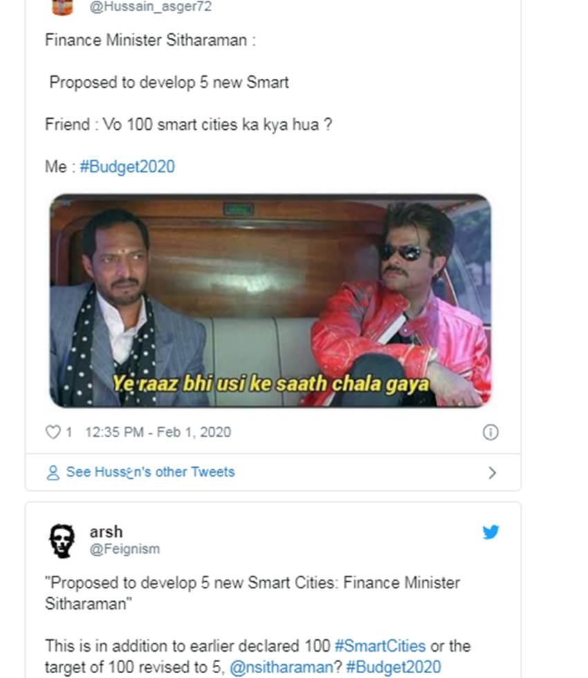 एक यूजर ने तंज कसते हुए कहा कि यह 100 पहले घोषित स्मार्ट सिटी का हिस्सा है या आप इसे अलग से विकसित करेंगे। बता दें कि 2018 में सरकार ने बजट 2018 में स्मार्ट शहरों के लिए आवंटन में 50 फीसद से अधिक की वृद्धि का प्रस्ताव किया था, जो कि 2017-2018 के लिए 4,000 करोड़ रुपये से 2018-2019 के लिए 6,169 करोड़ रुपये था।