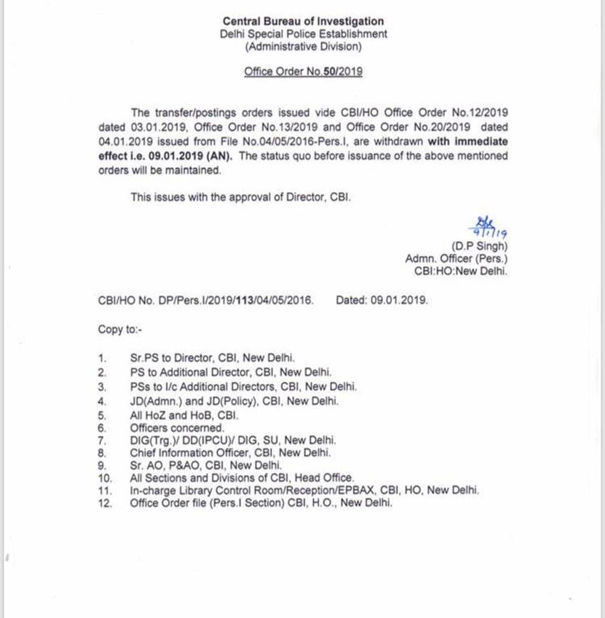 उच्चतम न्यायालय ने यह भी कहा कि वर्मा के खिलाफ आगे कोई भी निर्णय सीबीआई निदेशक का चयन एवं नियुक्ति करने वाली उच्चाधिकार प्राप्त समिति द्वारा लिया जाएगा। आलोक कुमार वर्मा का केन्द्रीय जांच ब्यूरो के निदेशक के रूप में दो वर्ष का कार्यकाल 31 जनवरी को पूरा हो रहा है। (एजेंसी इनपुट के साथ)