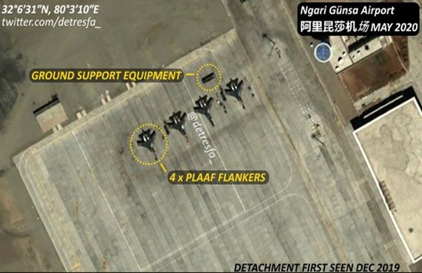 न्यूज वेबसाइट एनडीटीवी ने ओपन सोर्स इंटेलिजेंस एक्सपर्ट detresfa_ की तिब्बत स्थित नगारी गुनसा एयरपोर्ट की दो सैटेलाइट इमेजेस हासिल की हैं। पहली तस्वीर इसी साल 6 अप्रैल की है, जबकि दूसरी तस्वीर 21 मई की है। इनमें साफ देखा जा सकता है कि एयरबेस पर चीनी सेना दूसरे टैक्सी ट्रैक का निर्माण करने में जुटी है। एक तीसरी सैटेलाइट इमेज में मुख्य हवाई पट्टी को दिखाया गया है, जिस पर पहले से ही चीनी फाइटर जेट खड़े हैं। माना जा रहा है कि यह चीन की पीपुल्स लिबरेशन आर्मी के जे-11 और जे-16 फाइटर जेट्स हो सकते हैं।