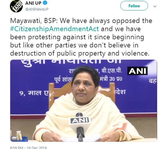 बसपा चीफ मायावती बोलीं- उनकी पार्टी हिंसा के खिलाफ