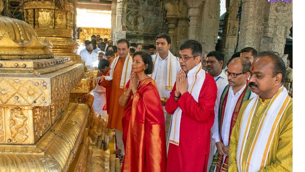 इसके बाद में रंगनायकुला मंडपम में मंदिर के पुजारियों और वेद पंडितों ने सीजेआई परिवार को वेदसर्वचनम दिया और तिरुमाला तिरुपति देवस्थानम के कार्यकारी अधिकारी ने मंदिर के तीर्थ प्रसादम और भगवान वेंकटेश्वर स्वामी की एक फोटो मोमेंटो भी उन्हें उपहार में दिया। इससे पहले शनिवार को चीफ जस्टिस ऑफ इंडिया ने तिरुचनूर में श्री पद्मावती अम्मावरु मंदिर में भी पूजा-अर्चना की थी।