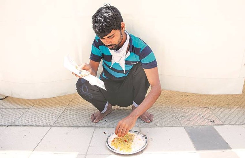 कमाल सैयद सूरत बताते हैं कि प्रदेश में प्रवासी मजदूर शहर में सुमन हाई स्कूल में बनाए शेल्टर होम में ठहरे हैं। 22 अप्रैल को सुबह नौ बजे यहां ठहरे लोगों को एक कप चाय के साथ दो बिस्किट दिए गए। दोपहर को आलू की सब्जी, चार पूरी और एक चपाती दी गई। शाम सात बजे मसाला खिचड़ी दी गई।