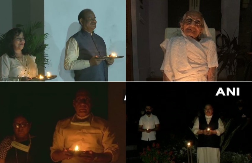 इसी बीच, राजधानी दिल्ली में प्रधानमंत्री मोदी ने भी अपने आवास पर बत्तियां बुझाकर रात नौ बजे दीया जलाया। उनके अलावा राष्ट्रपति रामनाथ कोविंद और उनके परिवार के सदस्यों ने भी रात नौ बजे एकजुटता और सकारात्मकता दर्शाने के लिए मोमबत्तियां जलाईं।
