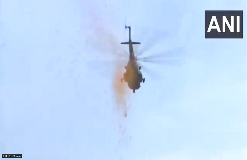 #WATCH IAF chopper showers flower petals on the Police War Memorial in order to express to pay tribute to police officials for their contribution in the fight against COVID19 pandemic#Delhi pic.twitter.com/XmKDBOAtfJ