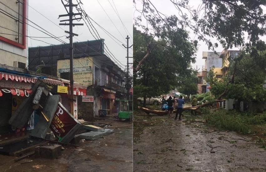 'तितली' के बुधवार को ओडिशा की ओर आगे बढ़ने के दौरान बहरामपुर में तेज बारिश और हवाएं चलीं। आलम यह था कि कई इलाकों में पेड़ और बिजली के खंभे गिर गए। स्थानीय लोगों के मुताबिक, कुछ क्षेत्रों में रात से बिजली भी गुल है। लोगों ने हवा के कारण गिरे पेड़, पोल और होर्डिंग-बैनर के फोटो खींचकर सोशल मीडिया पर साझा किए हैं।