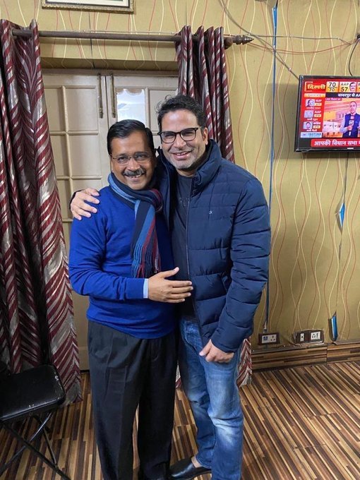 दिल्ली के मुख्यमंत्री और AAP संयोजक अरविंद केजरीवाल दोपहर एक बजे के चुनावी ट्रेंड्स के बाद राजनीतिक रणनीतिकार प्रशांत किशोर के साथ उनके दफ्तर पर मौजूद रहे। किशोर को राजनीतिक गलियारों में चुनावी चाणक्य के तौर पर भी जाना जाता है। वह इससे पहले पीएम नरेंद्र मोदी और बिहार सीएम नीतीश कुमार के लिए साथ कर चुके हैं।