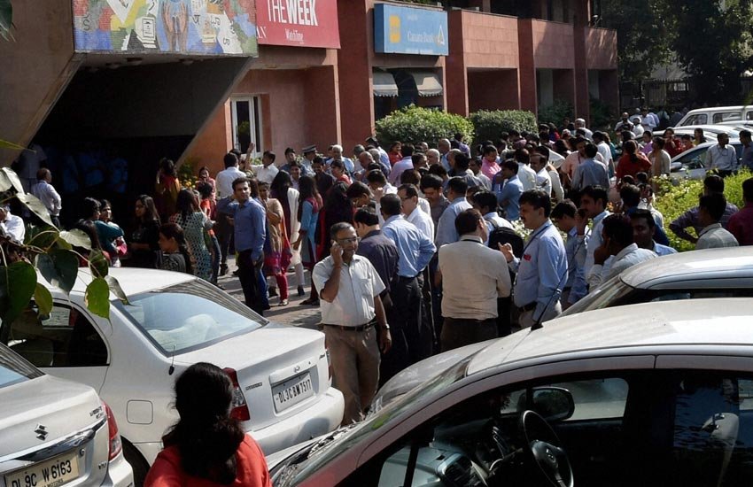 Buildings evacuated after strong tremors were felt in New Delhi. pic.twitter.com/OziaLAyFHI — ANI (@ANI_news) October 26, 2015