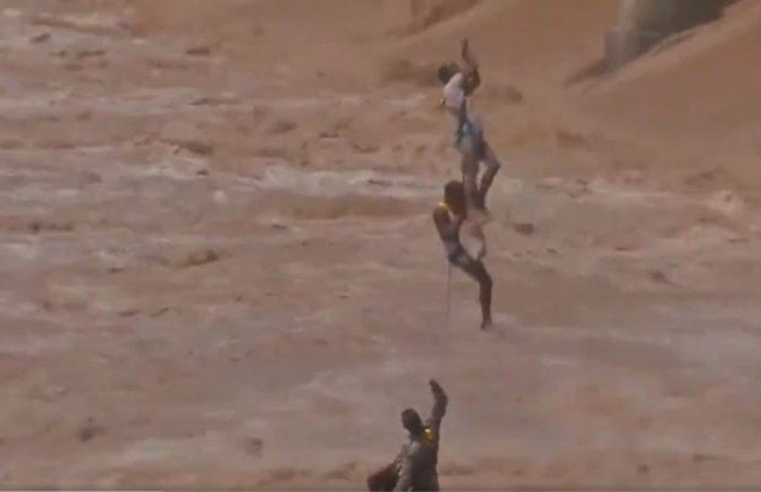 जम्मू के तवी नदी में जलस्तर बढ़ने के बाद दो घंटे के तक फंसे रहे मछुआरों को गरुड़ कमांडो ने हेलिकॉप्टर एमआई 17 के जरिए सुरक्षित बाहर निकाला। सोशल मीडिया पर यह वीडियो काफी वायरल हो रहा है। दो मछुआरों को बचाने के बाद गरुड़ कमांडो को पूरा देश सलाम कर रहा है। इन जवानों ने अपनी जान जोखिम में डालकर मछुआरों की जान बचाई। इस रेस्क्यू ऑपरेशन की जिम्मेदारी वायुसेना के 4 जवानों के कंधे पर थी। ग्रुप कैप्टन संदीप सिंह मिशन का नेतृत्व कर रहे थे। उन्होंने अपनी टीम को इस ऑपरेशन को सफल बनाने के लिए धन्यवाद दिया। उन्होंने बताया कि दोपहर करीब 12 बजे उन्हें सूचना मिली कि तवी नदी में जलस्तर बढ़ने के बाद कुछ लोग फंस गए।