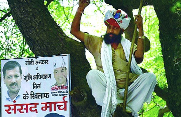 भूमि अधिग्रहण अध्यादेश के खिलाफ आम आदमी पार्टी की जंतर-मंतर पर आयोजित रैली के दौरान बुधवार को राजस्थान के एक किसान ने पेड़ से लटककर अपनी जान दे दी। भारी संख्या में मौजूद आम आदमी पार्टी के समर्थकों और पुलिस दस्तों के सामने यह हादसा हुआ और ये सभी घटना के मूकदर्शक बने रहे।