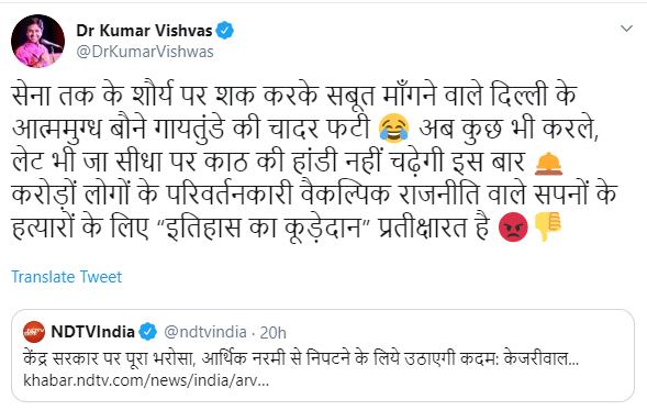 यहां देखें कुमार विश्वास का ट्वीट और लोगों की प्रतिक्रियाएं-