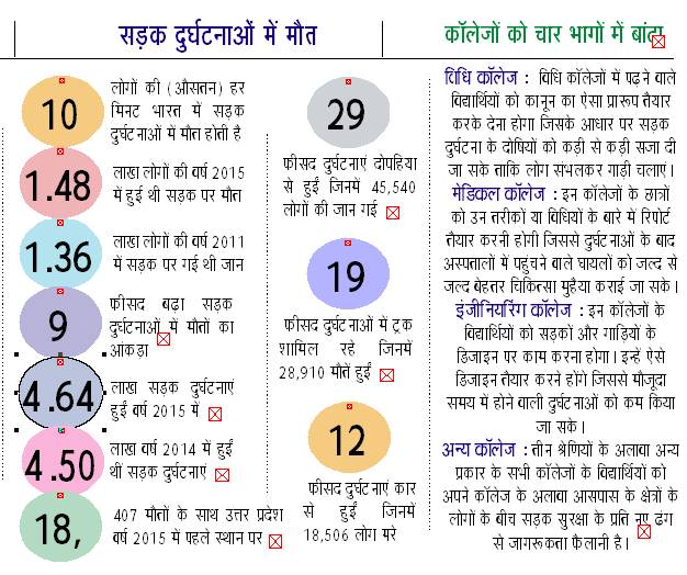 अमर ने बताया कि इस चुनौती के तहत कॉलेजों के विद्यार्थी कॉलेज और अपने आसपास के इलाकों में न सिर्फ सड़क सुरक्षा के संबंध में जागरूकता फैलाएंगे बल्कि उन्हें सड़क दुर्घटनाओं को राकेने के लिए कुछ नए कानून का प्रारूप, सड़कों या गाड़ियों के डिजाइन में बदलाव के सुझाव आदि देंगे। इसी के आधार पर सभी कॉलेजों का आकलन होगा। अमर के मुताबिक कॉलेजों को अपने कार्य की रिपोर्ट हर महीने आॅनलाइन देनी होगी। इसके अलावा हर तीसरे महीने में कॉलेजों की प्रगति रिपोर्ट के आधार पर शीर्ष तीन कॉलेजों को पुरस्कृत किया जाएगा। नौ महीने बाद अंतिम रूप से तीन कॉलेजों को पुरस्कृत किया जाएगा। इस अभियान में मंत्रालय के अलावा दिल्ली पुलिस और अन्य राज्यों की पुलिस भी सहयोग देगी।