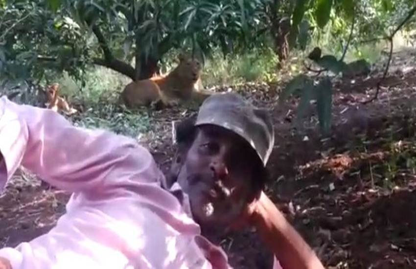 गुजरात के गिर नेशनल पार्क में सनक की हद तब देखने को मिली जब एक शख्स ने शेरनी के साथ अपनी तस्वीरें खिंचवाई। सोशल मीडिया पर वायरल हो रहे एक वीडियो में दिख रहा है कि एक शख्स अपने साथी की मदद से शेरनी के पास लेटकर पोज दे रहा है। इस दौरान वह शख्स निडर होकर मुस्कुरा भी रहा है। उसके ठीक पीछे शेरनी एक आम के पेड़ के नीचे लेटी हुई है। व्यक्ति के इस हरकत पर तमाम तरह की प्रतिक्रियाएं आ रही हैं। जंगली जानवर के मिजाज के साथ छेडछाड़ लोगों को अच्छा नहीं लग रहा। साथ ही वीडियो में नजर आ रहा शख्स अपनी भी जान भी खतरे में डाले हुए दिखाई दे रहा है।