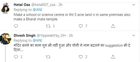 इसी तरफ खेमराज ठाकुर तंज कसते हुए लिखते हैं, ‘अच्छा है। ये गरीबी मिटा देगा। रोजगार पैदा होगा। प्रदूषण की समस्या का निदान हो जाएगा। डूबती हुई अर्थव्यवस्था को बी बचाया जा सकेगा।’ देवेश सिंह लिखते हैं, ‘अभी मंदिर बनाने का काम भी शुरू नहीं हुआ और योगी नाम बदलने की सलाह भी दे डाली।’ (भाषा इनपुट)