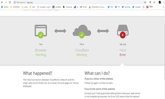 भारतीय जनता पार्टी की आधिकारिक वेबसाइट bjp.org काम नहीं कर रही है। बताया जा रहा है कि भाजपा की आधिकारिक वेबसाइट हैक हो गई है।
