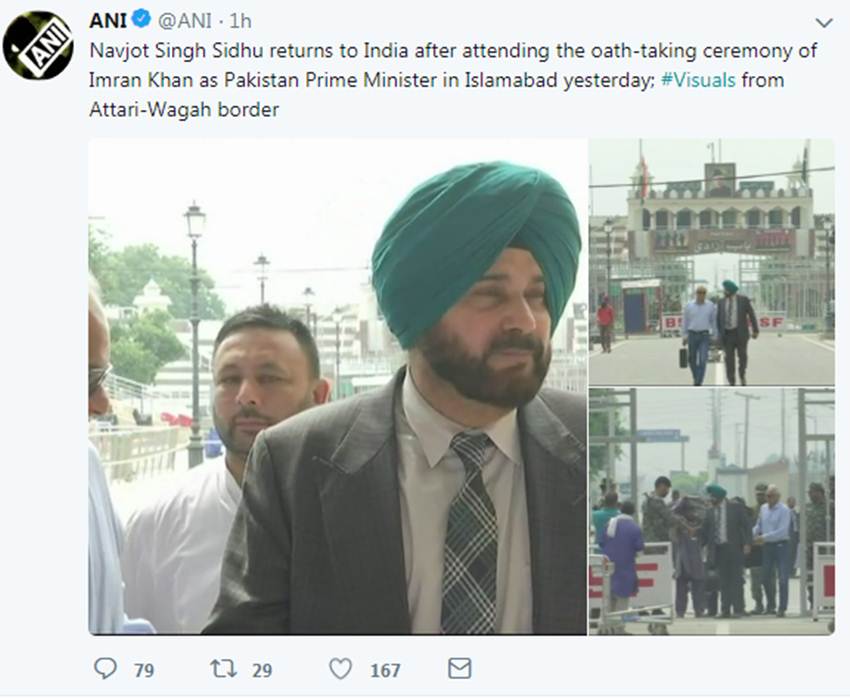 बता दें कि शनिवार (18 अगस्त) इमरान खान का शपथ ग्रहण समारोह थे। कार्यक्रम के लिए उनकी पार्टी ने सिद्धू समेत तीन भारतीय क्रिकेट दिग्गजों को न्योता भेजा था। अकेले सिद्धू ही थे, जो इस्लामाबाद पहुंचे। समारोह में उनकी मुलाकात बाजवा से हुई थी, जहां वे एक-दूजे के गले लगे थे। भारत में इसी को लेकर सिद्धू की जमकर आलोचना हो रही थी।