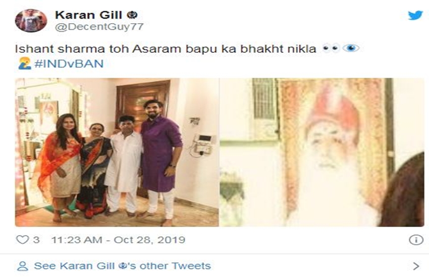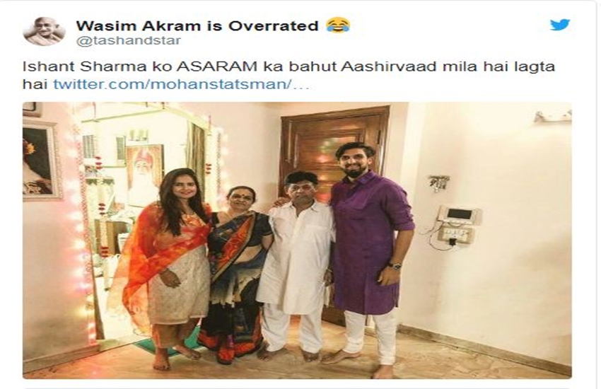 दिवाली के दिन भारतीय क्रिकेटर ईशांत शर्मा ने इंस्टाग्राम पर एक फोटो शेयर की जिससे वह ट्रोल्स के निशाने पर आ गए। उन्होंने अपने परिवार के साथ घर पर दिवाली सेलिब्रेशन की फोटो शेयर की लेकिन दीवार पर रेप के दोष में सजा काट रहे स्वयंभू संत आसाराम की फोटो टंगी थी। जैसे ही यह फोटो पोस्ट हुई यूजर्स का ध्यान इसपर गया और तमाम तरह की प्रतिक्रियाएं सामने आई।