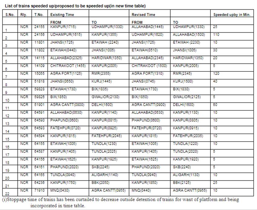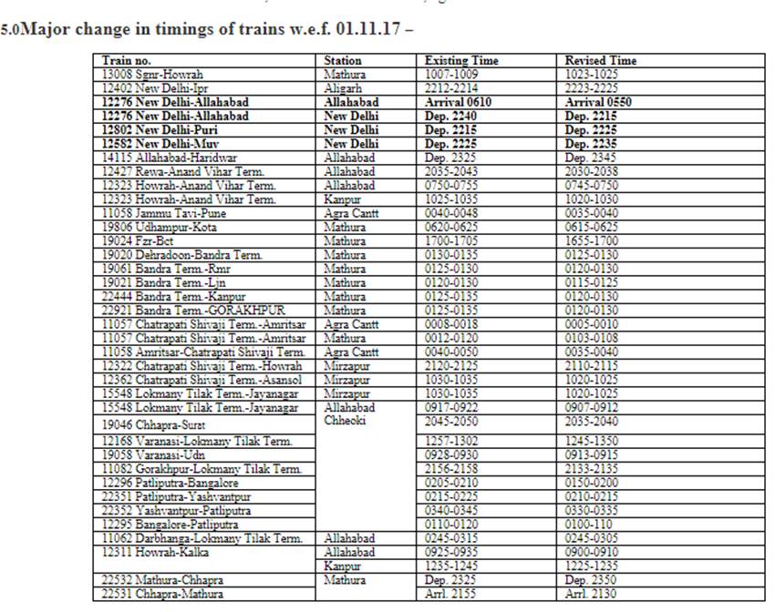 Salient Features Of Time Table of North Central Railway Effective From 01.11.2017https://t.co/AMqslDFM3e