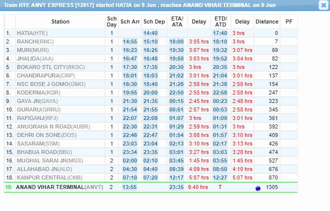 विश्वेश चौबे ने कहा कि जोन में ट्रेनों की संख्या 2008 में जहां 1300 थी, वह 2018 में बढ़कर 1800 हो गई, हालांकि आधारभूत ढांचा उतनी गति से नहीं बढ़ा। उन्होंने कहा, ‘‘इसलिए क्षमता में बढ़ोतरी जरूरी है। यार्ड में इतनी ट्रेनों को संभालने की क्षमता नहीं है।’’ हालांकि रेलवे के दावों और आंकड़ों से इतर देश में कुछ ऐसी ट्रेनें हैं, जो 28 घंटे, 12 घंटे, 10 घंटे और 9 घंटे लेट चल रही हैं। हम आपको दो चार उदाहरण बताते हैं। आनंद विहार से भागलपुर जाने वाली गरीब रथ को यहां से 8 तारीख को ही शाम 4 बजकर 55 मिनट पर खुलना था, लेकिन ये ट्रेन यहां से 9 जून को लगभग 28 घंटे की देरी से खुली। झारखंड की राजधानी रांची से दिल्ली आने वाली ट्रेन संख्या 12817 नौ जून को आनंद विहार लगभग 10 घंटे की देरी से पहुंची। ये ट्रेन अमूमन लेट ही रहती है। आनंद बिहार से हटिया जाने वाली ट्रेन नंब 12818 भी औसतन 8 घंटे लेट चलती है।