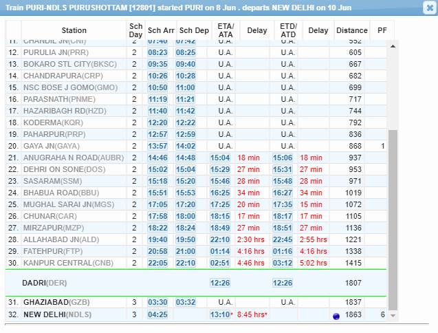 उत्तर प्रदेश-बिहार-झारखंड-ओडिशा के लिए अच्छी ट्रेनों में शुमार पुरुषोत्तम एक्सप्रेस भी 5 से 6 घंटे लेट रहती है। 10 जून को ये ट्रेन नयी दिल्ली रेलवे स्टेशन पर 9 घंटे दिखा रही है।