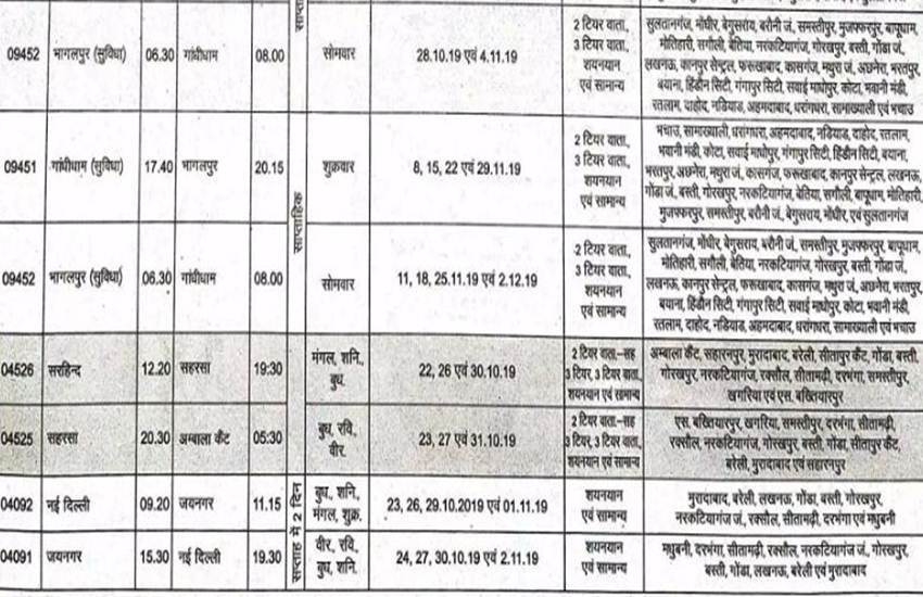 देखिए ट्रेनों के पूरी लिस्ट:-