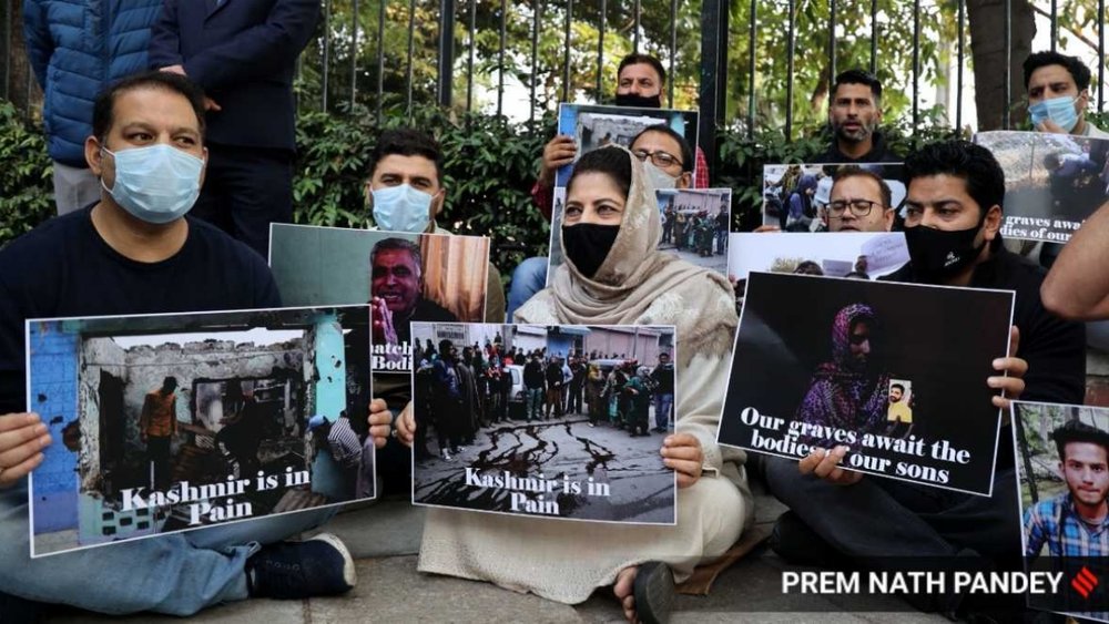 कश्मीर में बोलने की आजादी नहीं मिलने के बाद पीडीपी अध्यक्ष और जम्मू कश्मीर की पूर्व मुख्यमंत्री महबूबा मुफ़्ती ने दिल्ली के जंतर मंतर पर धरना दिया। इस दौरान उन्होंने अपने हाथ में एक पोस्टर लिया हुआ था और जिसमें लिखा था कि कश्मीर दर्द में है। पीपुल्स डेमोक्रेटिक पार्टी की अध्यक्ष ने कश्मीर में मुठभेड़ के दौरान बेगुनाह लोगों की हत्या और वहां के लोगों को दबाए जाने के प्रयास को रोकने की मांग की।