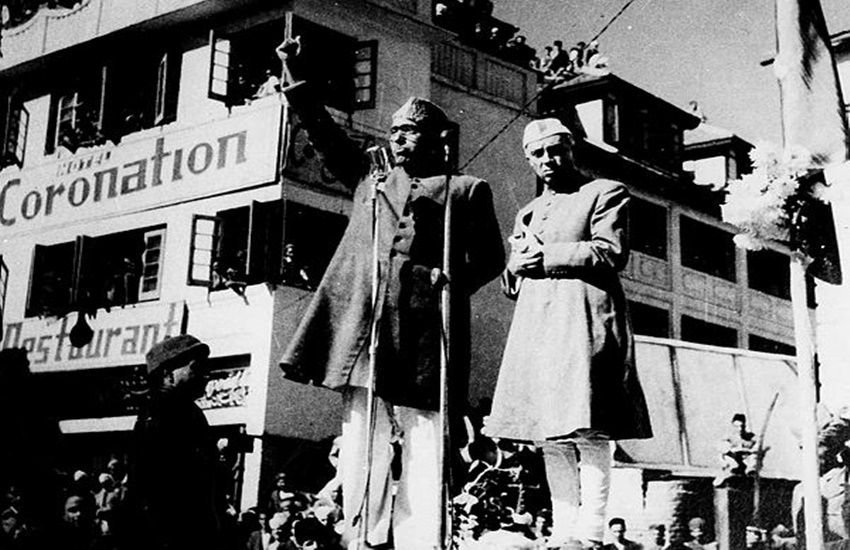 शेख अब्दुल्ला के साथ पं. जवाहरलाल नेहरू, लाल चौक पर