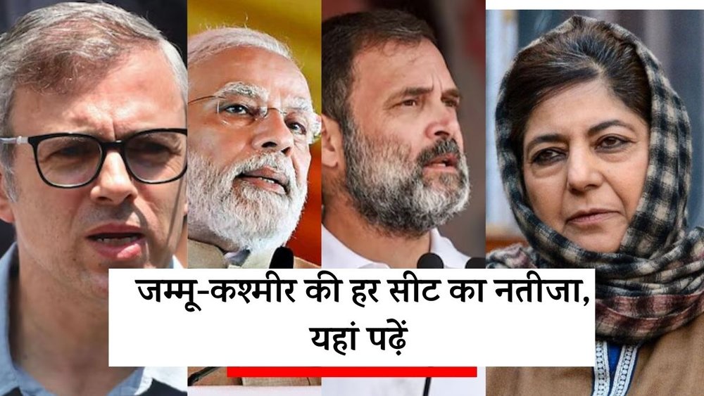 Jammu Kashmir (JK) Chunav Result 2024 Winners Losers Full List: जम्मू-कश्मीर विधनासभा चुनाव के नतीजे सामने आ रहे हैं। अभी तक हुई वोटों की गिनती के मुताबिक नेशनल कांफ्रेस और कांग्रेस गठबंधन को 48 सीटें मिली हैं। वहीं बीजेपी को 29 और PDP को 3 सीटें मिली हैं। पीडीपी नेता इल्तिजा मुफ़्ती ने हार स्वीकार कर ली है। यहां आप सीटवार नतीजे देख सकते हैं और जान सकते हैं कि किस सीट से किस प्रत्याशी ने जीत दर्ज की है।