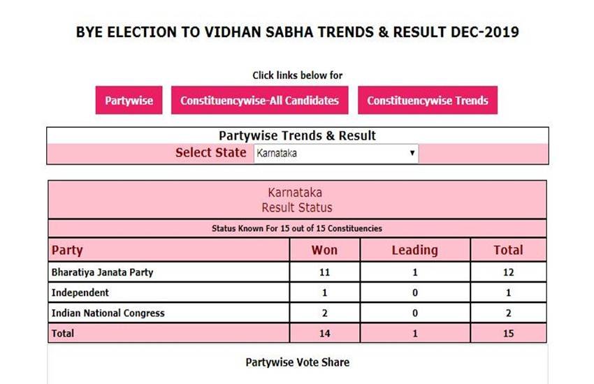 Karnataka Assembly bypoll results 2019 LIVE: Check here