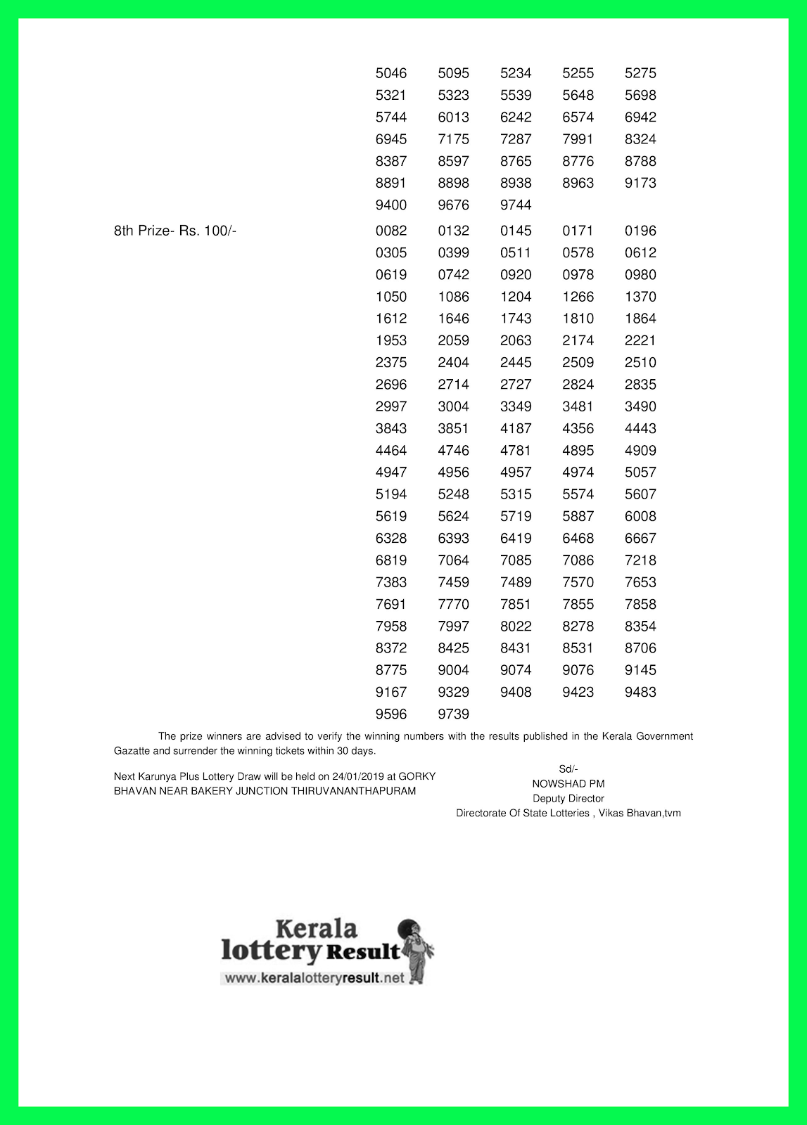 Kerala Karunya Plus Lottery KN-248 Results में सातवां पुरस्कार इन टिकटों के धारकों को मिलेगा। 5648 3995 8776 1295 2569 5698 5255 8898 7175 3721 7287 5234 2870 4859 8765 8597 5323 1635 2234 1388 4439 4460 6574 0351 1024 5095 1320 8963 2974 2680 5046 8387 8891 4471 2045 0709 9744 1578 1395 4588 3181 8938 4861 3519 9676 2720 1815 5539 3254 8324 8788 9173 1331 0496