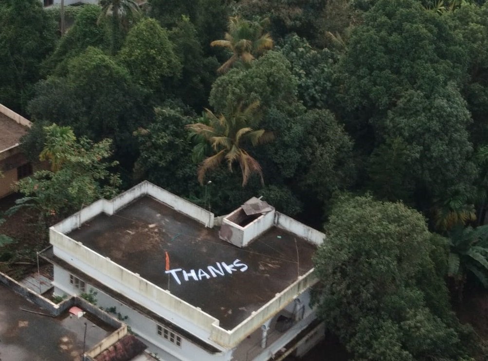 कोच्चि में बाढ़ पीड़ितों ने मदद के बाद नौसेना को अनोखे अंदाज में शुक्रिया अदा किया है। सोमवार को एक मकान की छत पर लोगों ने 'थैंक्स' लिख दिया। यह वही इमारत थी, जहां से 17 अगस्त को नौसेना ने दो महिलाओं को रेस्क्यू कराया था।