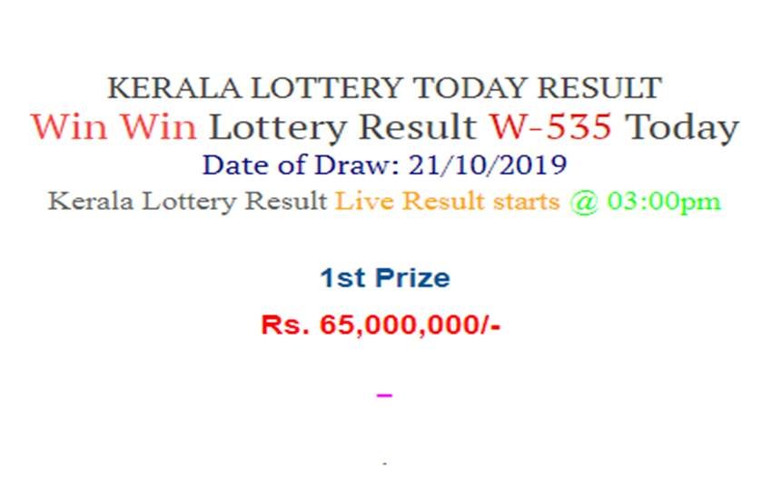 Kerala Win Win Lottery W 535 Today Results, Kerala Lottery Today Result: Win Win W-535 लॉटरी के लिए लकी ड्रा निकाला जा चुका है। ड्रॉ निकाले जाने के बाद पहले लकी विजेता को 65 लाख रुपए का इनाम लगा है। इस लॉटरी के लिए दूसरा पुरस्कार 10 लाख रुपए तथा तीसरा इनाम 1 लाख रुपया है जिसे 1-1 भाग्यशाली विजेता ने जीता है। लॉटरी खरीदने वाले कई लोगों को आज इन तीन के अतिरिक्त ढेरों अन्य पुरस्कार भी इस लॉटरी के तहत मिले हैं। 8 हज़ार रुपए का सांत्वना पुरस्कार भी कुछ टिकट धारकों को लगा है।