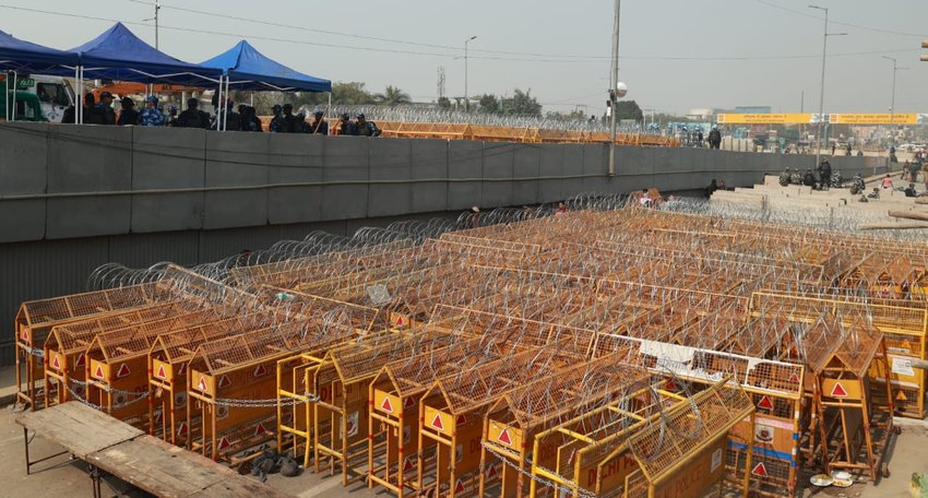 किसानों के प्रस्तावित ‘दिल्ली चलो’ मार्च के मद्देनजर पुलिस ने बुधवार को सिंघू और टीकरी सीमाओं पर कई स्तर के बैरिकेड लगाकर वाहनों की आवाजाही रोक दी, जिससे दिल्ली के सीमावर्ती इलाकों में यातायात प्रभावित हुआ। दिल्ली और हरियाणा के बीच सिंघू और टिकरी सीमाएं यातायात के लिए पूरी तरह से बंद कर दी गई हैं जबकि गाजीपुर बॉर्डर पर नियंत्रित तरीके से वाहनों की आवाजाही की अनुमति है। किसानों के दिल्ली मार्च को रोकने के लिए सिंघू सीमा के पास एक गांव में सड़क का एक हिस्सा खोद दिया गया।
