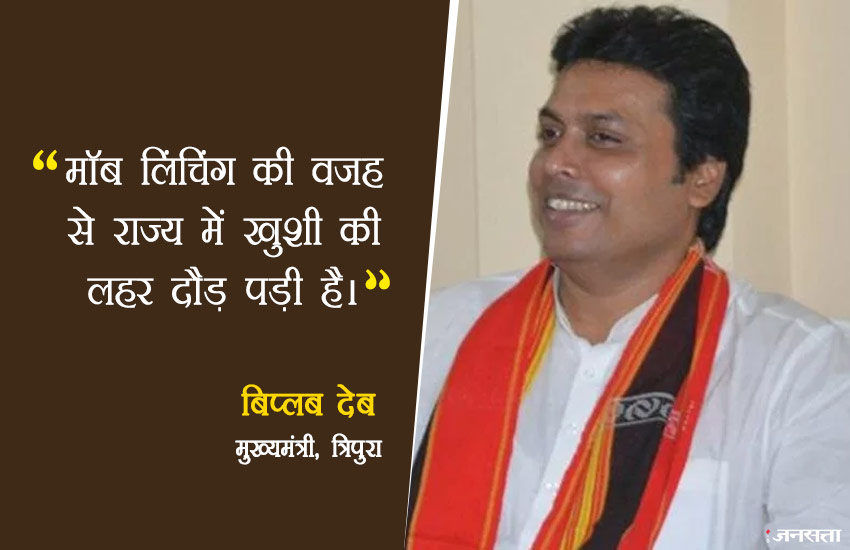 इधर, त्रिपुरा के मुख्यमंत्री बिप्लव देव ने भी मॉब लिंचिंग पर विवादित बयान दिया है। उन्होंने कहा है कि कई मॉब लिंचिंग की घटना की वजह से राज्य में खुशी की लहर दौड़ पड़ी है। बीजेपी के फायरब्रांड नेता विनय कटियार ने भी विवदाति बयान दिया है और कहा है कि मुस्लिम समुदाय गाय को हाथ लगाने से पहले सोच ले क्योंकि हिन्दू समाज आक्रामक हो चुका है।