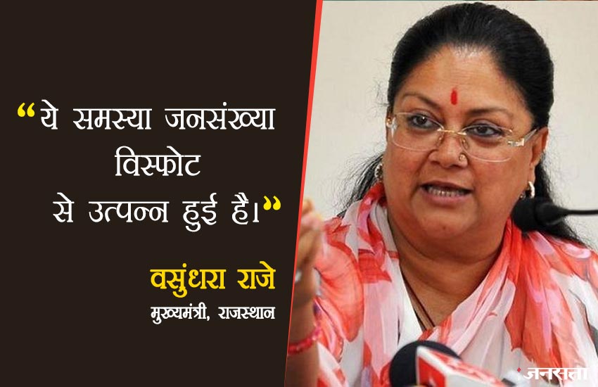 राजस्थान के अलवर में 20 जुलाई को गो-तस्करी के शक में भीड़ ने रकबर उर्फ अकबर नाम के शख्स की पिटाई कर दी जिसकी बाद में पुलिस हिरासत में मौत हो गई। इससे पहले भी राजस्थान में मॉब लिंचिंग हो चुकी है। जब राज्य की मुख्यमंत्री वसुंधरा राजे से इस पर प्रतिक्रिया पूछी गई तो उन्होंने मॉब लिंचिंग पर बेतुका बयान दिया। सीएम वसुंधरा ने कहा कि ये समस्या जनसंख्या विस्फोट से उत्पन्न हुई है। सीएम ने कहा, “लोगों को रोजगार चाहिए। वे इस बात से निराश हैं कि वो रोजगार के लिए काबिल नहीं बन पा रहे हैं। एक निराशा का भाव है जो लोगों और समुदायों में फैल रहा है। यह ऐसा कुछ नहीं है जो राज्य से आ रहा है। ऐसा लोगों की स्थितियों के कारण उनके गुस्से के तौर पर बाहर आ रहा है।’ वसुंधरा ने ये भी कहा कि यह सिर्फ राजस्थान की सच्चाई नहीं है, यह दुनिया की सच्चाई है और दुनियाभर में ऐसी घटनाएं हो रही हैं।