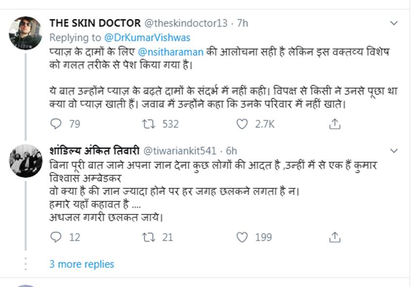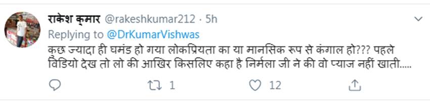 वहीं, एक और यूजर ने लिखा है , कुछ ज्यादा ही घमंड हो गया लोकप्रियता का या मानसिक रूप से कंगाल हो??? पहले विडियो देख तो लो की आखिर किसलिए कहा है निर्मला जी ने की वो प्याज नहीं खाती…..