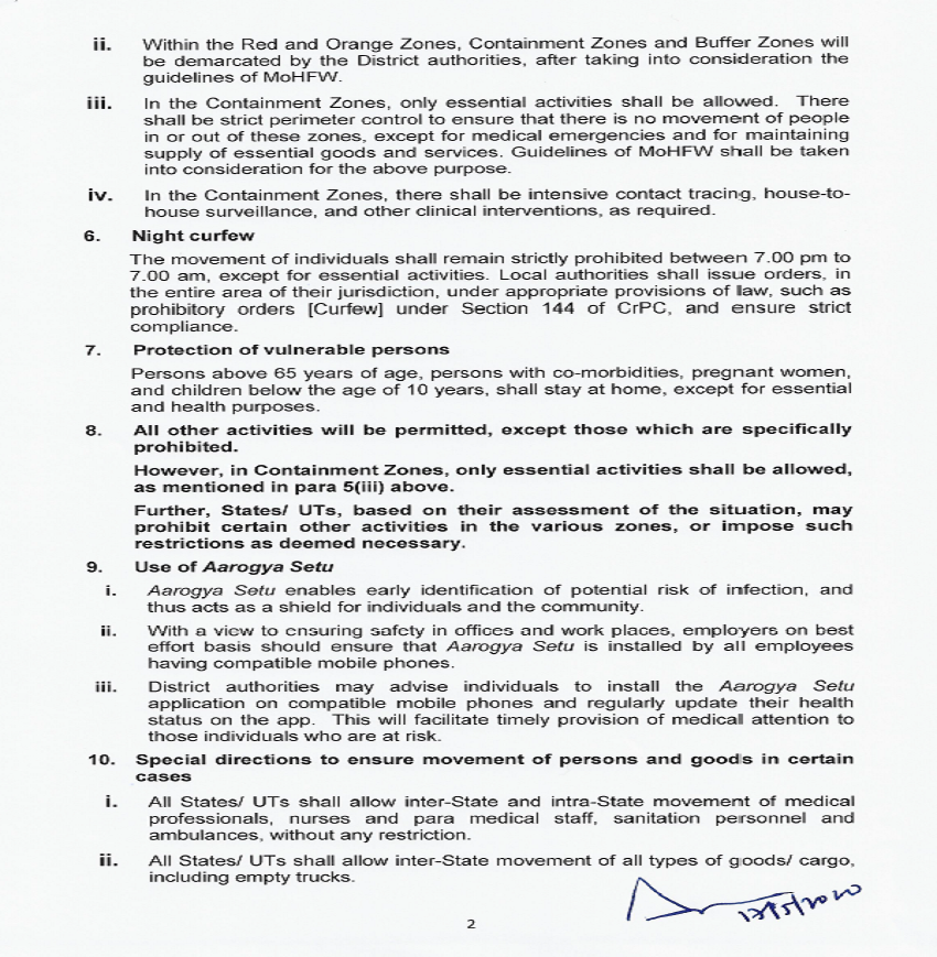 क्या नहीं होगा: व्यावसायिक विमान सेवा शुरू नहीं होगी। स्कूल-कॉलेज/शैक्षणिक व प्रशिक्षण संस्थान/कोचिंग संस्थान नहीं खुलेंगे। मेट्रो रेल नहीं चलेगी। होटल, रेस्तरां आदि बंद ही रहेंगे। सिनेमा हॉल, शॉपिंग मॉल, जिम, स्विमिंग पूल, एंटरटेनमेंट पार्क, थिएटर्स, बार, ऑडिटोरियम, सार्वजनिक सभागार बंद रहेंगे। स्पोट्र्स कॉम्प्लैक्स, स्टेडियम खुल सकेंगे, लेकिन दर्शकों का प्रवेश नहीं हो सकेगा। किसी भी तरह का सामाजिक, राजनीतिक, धार्मिक, खेल, मनोरंजन, शैक्षणिक, सांस्कृतिक या धार्मिक कार्यक्रम या आयोजन नहीं कराया जा सकेगा। बड़ी संख्या में लोगों का जुटान किसी भी मकसद से नहीं हो सकेगा। सभी धार्मिक स्थल बंद रहेंगे।