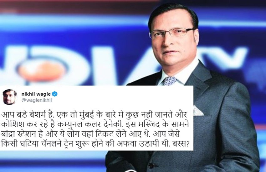 lockdown in india: इंडिया टीवी के एडिटर इन चीफ रजत शर्मा अपने ट्वीट के चलते एक बार फिर सोशल मीडिया यूजर्स के निशाने पर आए गए हैं। दरअसल उन्होंने मंगलवार (14 अप्रैल, 2020) को प्रधानमंत्री नरेंद्र मोदी द्वारा देशव्यापी लॉकडाउन 3 मई तक बढ़ाए जाने के बाद मुंबई के उपनगरीय बांद्रा पश्चिम स्टेशन के बाहर इकट्ठा हुए प्रवासी मजदूरों से जुड़ा ट्वीट किया। ट्वीट में उन्होंने कहा, ‘बांद्रा में जामा मस्जिद के बाहर इतनी बड़ी संख्या में लोगों का इकट्ठा होना चिंता की बात है। इन्हें किसने बुलाया? अगर ये लोग घर वापस जाने के लिए ट्रेन पकड़ने के लिए आए थे तो उनके हाथों में सामान क्यों नहीं था?’