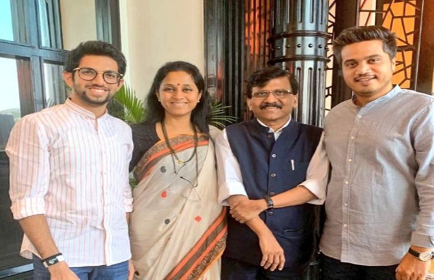 महाराष्ट्र में जारी राजनैतिक उठा-पटक के बीच रविवार सुबह शिवसेना नेता आदित्य ठाकरे, संजय राउत और एनसीपी की नेता सुप्रिया सुले और रोहित पवार की मुलाकात हुई। इन नेताओं की मुलाकात मुंबई के होटल रेनशां में हुई, जहां एनसीपी के विधायक ठहरे हुए हैं। हालांकि रविवार शाम में एनसीपी के विधायकों को होटल ग्रैंड हयात में शिफ्त कर दिया गया है। माना जा रहा है कि महाराष्ट्र के मौजूदा राजनैतिक हालात में पवार और ठाकरे परिवार के बीच नजदीकियां बढ़ रही हैं।