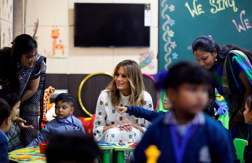 अमेरिका की फर्स्ट लेडी मेलानिया ट्रम्प ने मंगलवार को दिल्ली सरकार के एक स्कूल का दौरा किया। इस दौरान वह स्कूल में एक घंटे रुकीं और ‘हैप्पीनेस क्लास’ की तारीफ की। मेलानिया ट्रम्प दक्षिणी दिल्ली के नानकपुरा इलाके में स्थित सर्वोदय सीनियर सेकेंडरी स्कूल में पहुंची थीं और उन्होंने वहां स्कूली बच्चों और अध्यापकों से बात की।