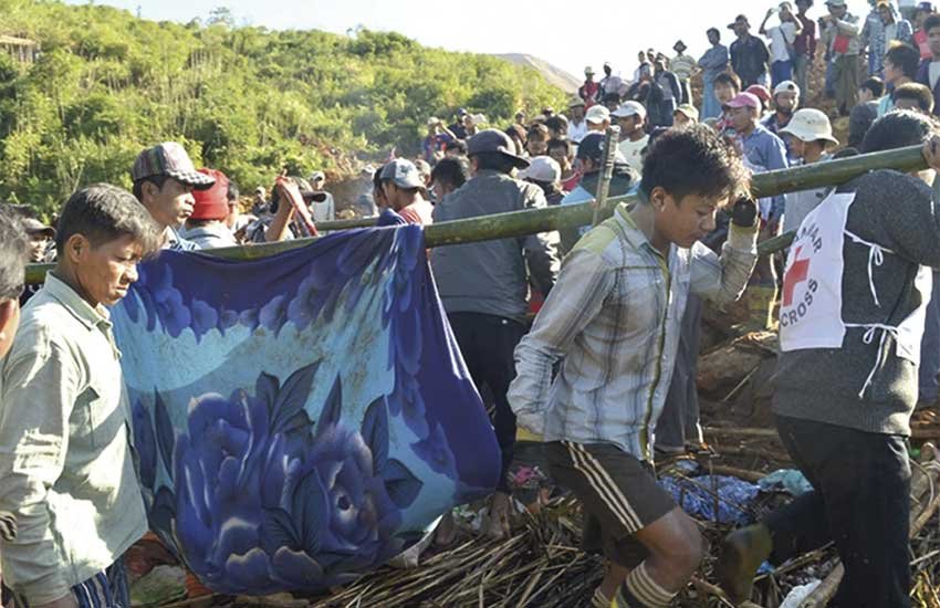 काचिन प्रांत के दूरदराज में स्थित इस बयाबान में बहुत से लोग इस उम्मीद में झोंपड़िया बना कर रह रहे थे कि पन्ना मिलने से उनकी तकदीर बदल जाएगी। एचपकांत के एक स्थानीय अधिकारी निलार माइंत ने बताया कि हमने 21 नवंबर को 79 शव पाए और रविवार को 11 शव मिले। इस तरह कुल मिला कर अभी तक 90 शव मिले हैं। उन्होंने कहा कि हम लोग सिर्फ शव देख रहे हैं और कोई नहीं जानता कि यहां कितने लोग रहते हैं। उन्होंने बताया कि अभी तक मलबे से सिर्फ एक व्यक्ति जीवित निकाला जा सका था, उसकी भी कुछ देर बाद मौत हो गई।
