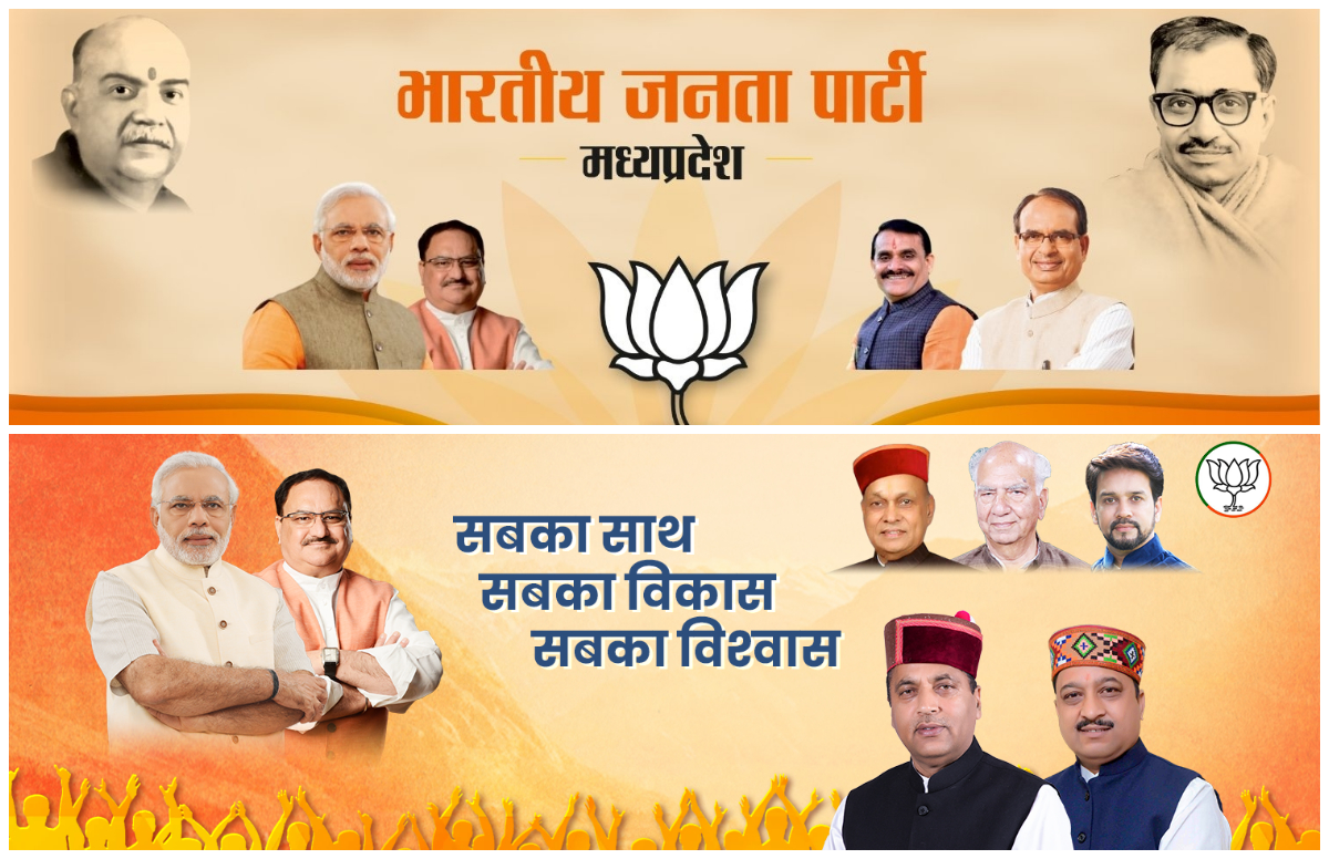 Facebook और Twitter, दोनों ही जगह BJP यूपी के सोशल हैंडल्स पर जो बैनर लगा है, उसमें पीएम की तस्वीर नहीं है। हैं तो सिर्फ- सीएम योगी, बीजेपी यूपी चीफ स्वतंत्र देव सिंह और सूबे के दोनों डिप्टी सीएम (केशव प्रसाद मौर्य और दिनेश शर्मा) की तस्वीरें, जबकि अन्य भाजपा शासित सूबों के टि्वटर हैंडल्स पर जो बैनर फोटो हैं, उनमें वहां के सीएम के साथ पीएम मोदी का फोटो भी है। ऐसे राज्यों में मध्य प्रदेश, गुजरात, हिमाचल प्रदेश और हरियाणा आदि हैं। गोवा के टि्वटर हैंडल पर जो फोटो है, उसमें तो सिर्फ मोदी और केंद्रीय गृह मंत्री अमित शाह का फोटो है।