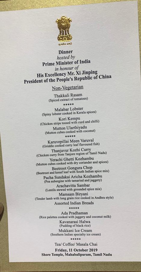 PM मोदी की ओर से शी चिनफिंग के लिए रखी गई डिनर पार्टी में नॉन वेज व्यंजन भी थे। यह रहा उसी से जुड़ा मीन्यूः