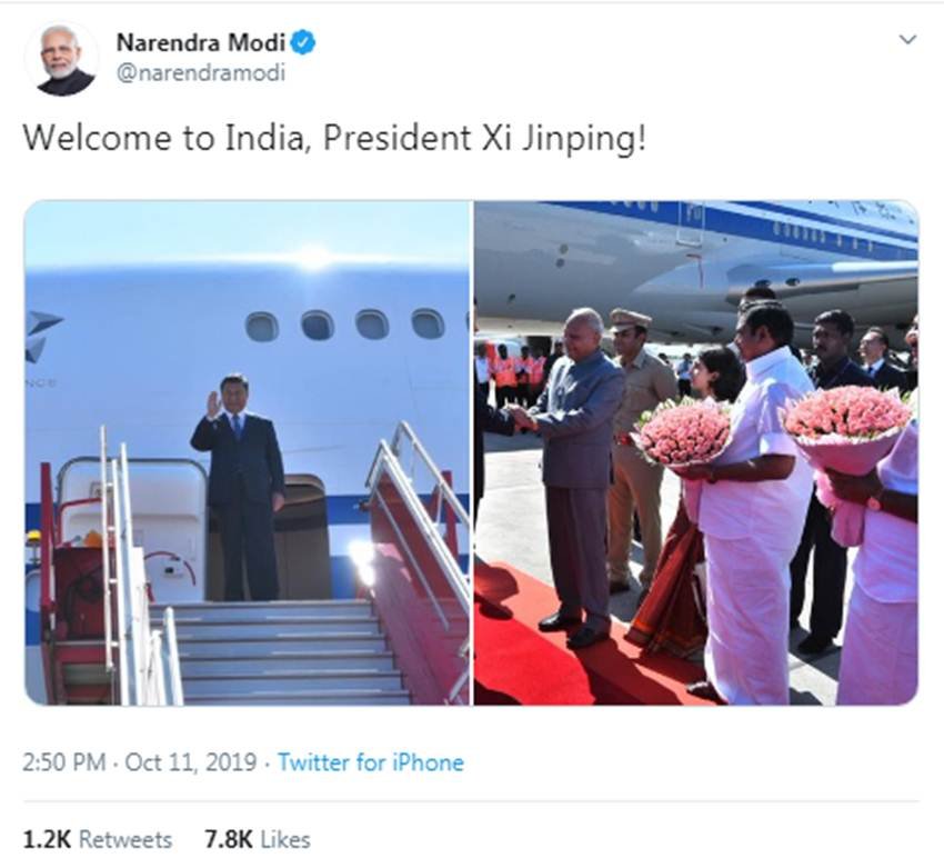 इससे पहले, मोदी ने आज सुबह शी के साथ अनौपचारिक शिखर वार्ता के लिए अपने चेन्नई पहुंचने की जानकारी देते हुए तीनों भाषाओं में ट्वीट किया, ‘‘चेन्नई पहुंचा हूं। मैं तमिलनाडु की महान भूमि पर आकर खुश हूं जो अपनी अद्भुत संस्कृति और आतिथ्य सत्कार के लिए जानी जाती है।’’