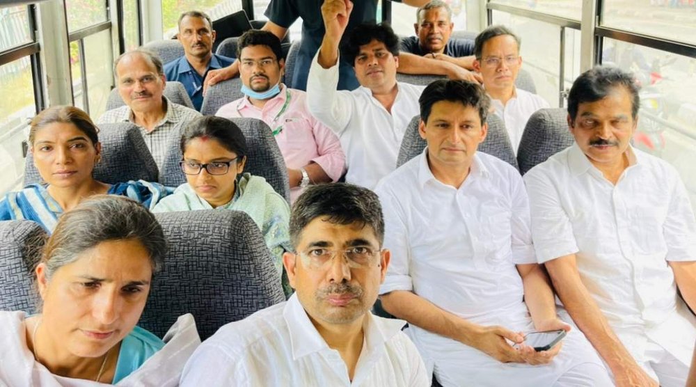 वहीं अधिकारियों का आरोप है कि कांग्रेस नेताओं ने पुलिसकर्मियों को धक्का दिया। अधिकारी ने बताया, ”हमने कांग्रेस पार्टी के नेताओं और कार्यकर्ताओं को हिरासत में लेने की चेतावनी दी थी। फिर भी उन्होंने हंगामा करना जारी रखा। पुलिस को उसकी ड्यूटी करने में बाधा डाली। उनमें से कुछ हिरासत में लिए जाने का विरोध कर रहे थे। वहीं कुछ ने हमारे अधिकारियों को धक्का भी दिया।”