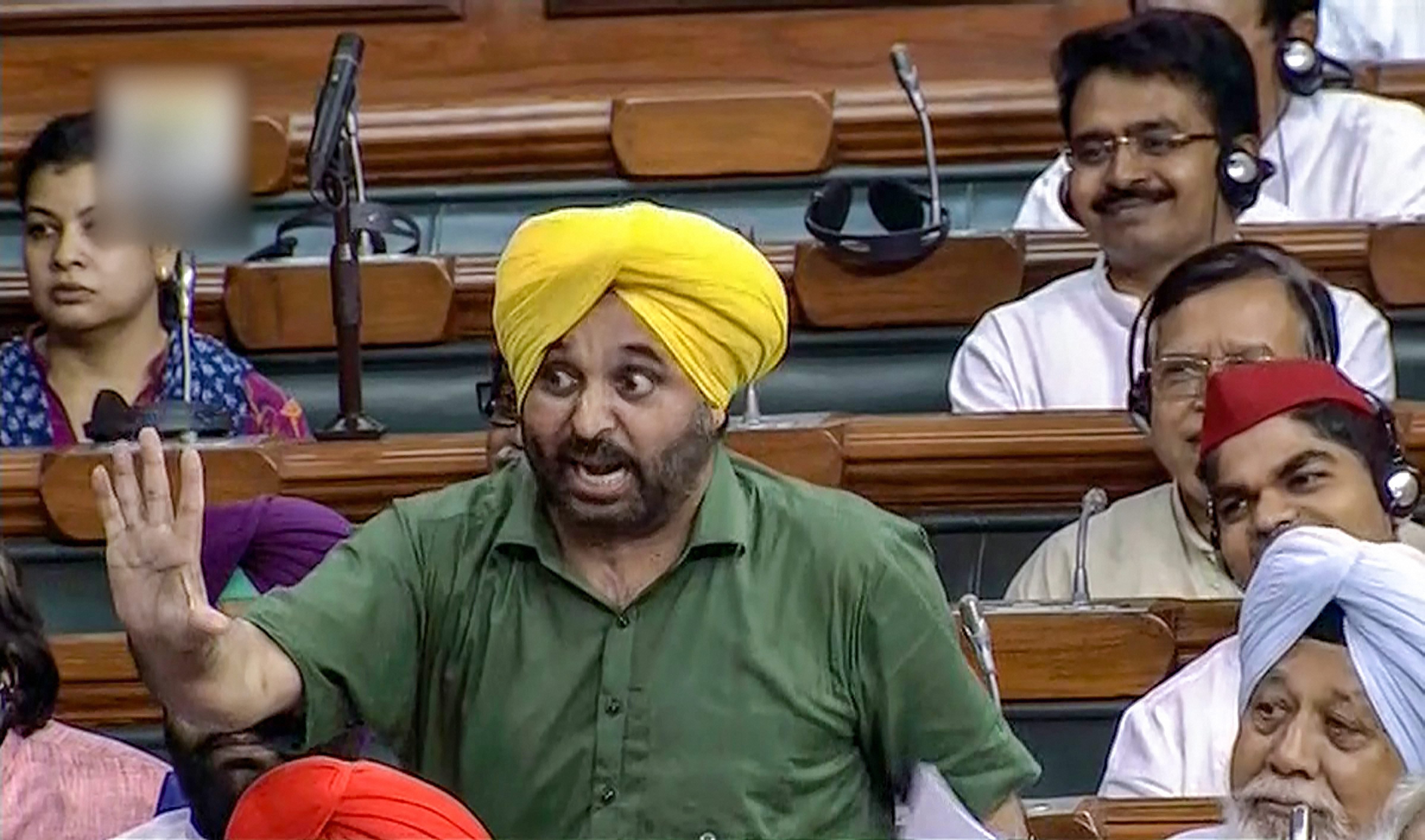 बहस के दौरान अपनी बात रखते हुए आम आदमी पार्टी के सांसद भगवंत मान। (फोटोः पीटीआई)