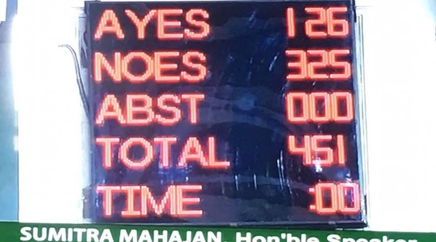 10 घंटे चली चर्चा के बाद अविश्वास प्रस्ताव खारिज हो गया। सरकार के पक्ष में 325 वोट आए। विपक्ष के पक्ष में 126 वोट आए।