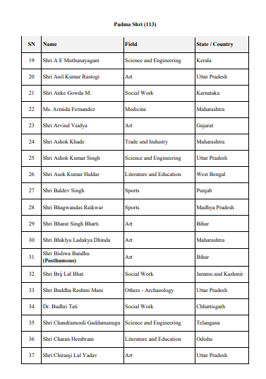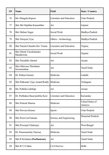 Padma Awards Full List: केंद्र सरकार ने इस वर्ष पद्म पुरस्कार विजेताओं की सूची जारी कर दी है। देश के सर्वोच्च नागरिक पुरस्कारों में से एक, पद्म पुरस्कार के विजेताओं की सूची हर साल गणतंत्र दिवस की पूर्व संध्या पर घोषित की जाती है।